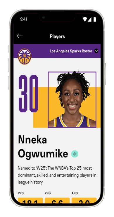 The app includes detailed information about all the WNBA teams and players. Users can browse team rosters, player profiles, and statistics. They can also follow their favorite players to receive updates.